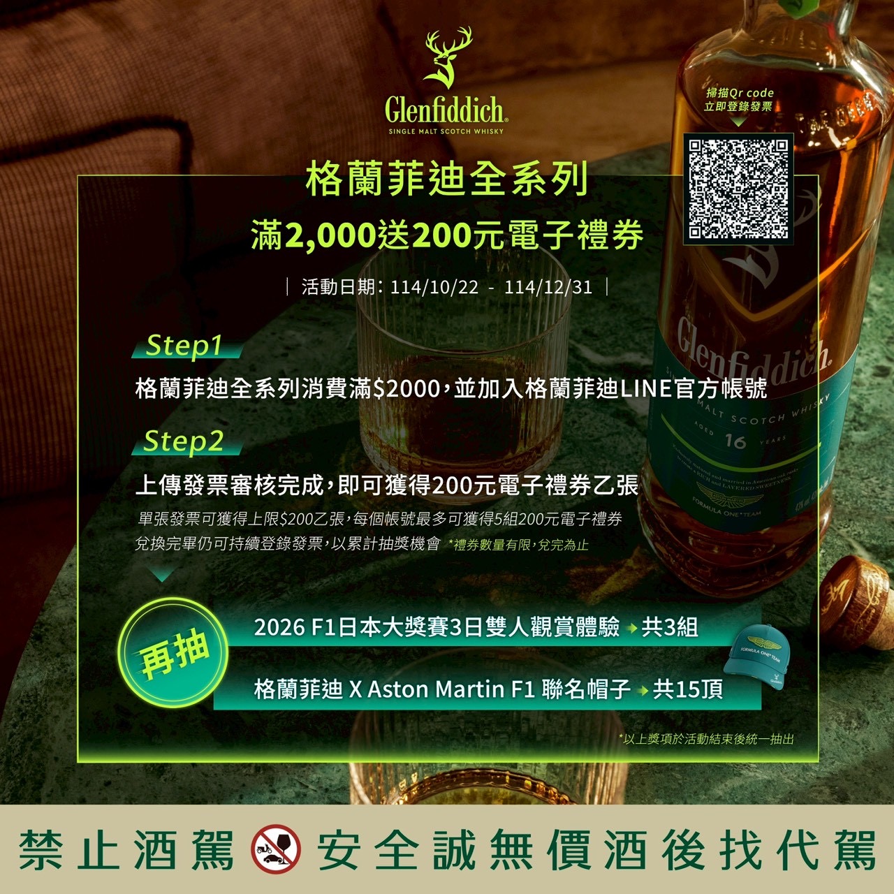 即日起凡購買格蘭菲迪滿2000元,就送你200元購物金💵